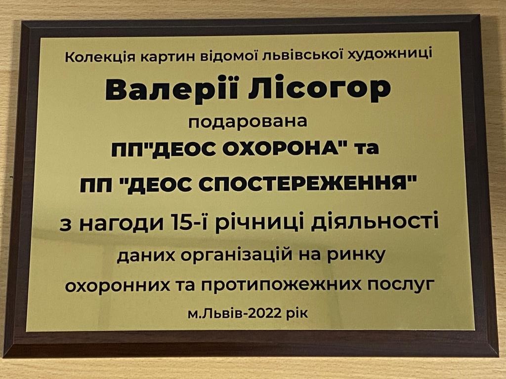 Відома львівська художниця Валерія Лісогор, яка усі ті роки була і надалі залишається нашою клієнткою, подарувала колекцію з 14 свої картин з видами міста Лева