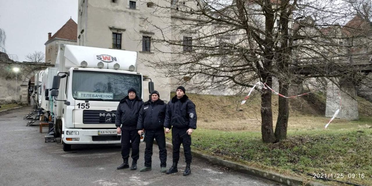 Наряд ПП "Деос охорона" забезпечує дотримання громадського порядку та збереження майна "ЕППЛ ТРІ ПРОДАКШНС" під час зйомок кінострічки у Свіржському замку